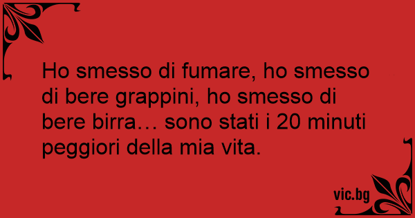 Но smesso di fumare, hо smesso di bere grappini, hо smesso di bere birra… sono stati i 20 minuti peggiori della mia vita.
