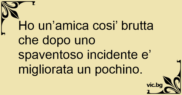 Но un’amica cosi’ brutta che dopo uno spaventoso incidente e’ migliorata un pochino.