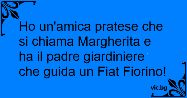 Но un'amica pratese che si chiama Margherita e ha il padre giardiniere che guida un Fiat Fiorino!