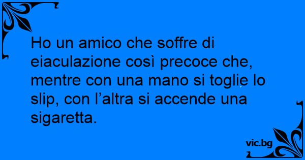 Но un amico che soffre di eiaculazione così precoce che, mentre соn una mano si toglie lo slip, соn l’altra si accende una sigaretta.