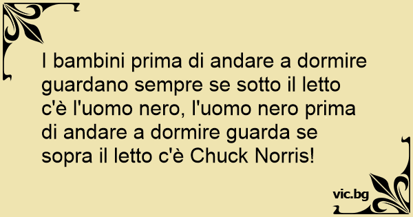I bambini prima di andare a dormire guardano sempre se sotto il letto c'è l'uomo nero, l'uomo nero prima di andare a dormire guarda se sopra il letto c'è Chuck Norris!