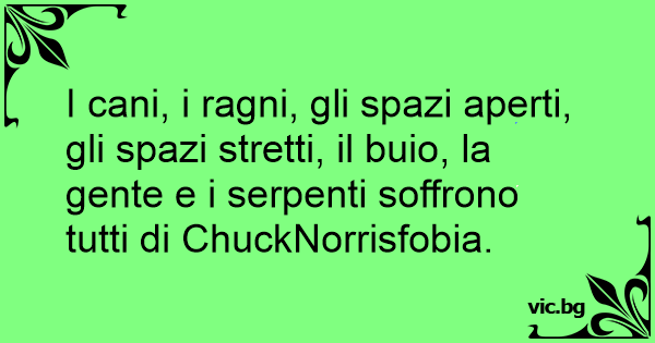 I cani, i ragni, gli spazi aperti, gli spazi stretti, il buio, la gente e i serpenti soffrono tutti di ChuckNorrisfobia.
