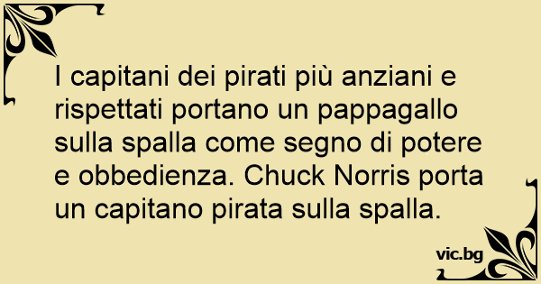 I capitani dei pirati più anziani e rispettati portano un pappagallo sulla spalla come segno di potere e obbedienza. Chuck Norris porta un capitano pirata sulla spalla.