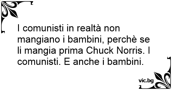 I comunisti in realtà non mangiano i bambini, perchè se li mangia prima Chuck Norris. I comunisti. E anche i bambini.