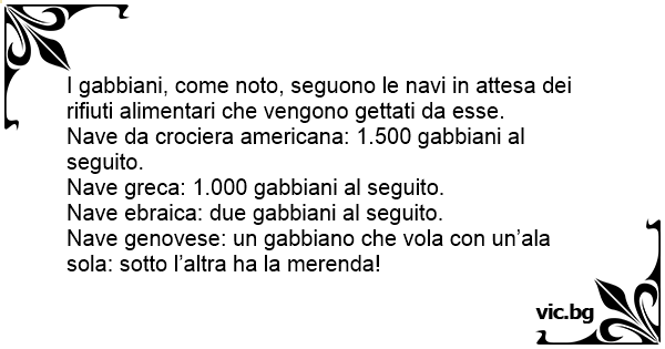 Nave genovese: un gabbiano che vola соn un’ala sola: sotto l’altra ha la merenda!
