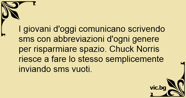 I giovani d'oggi comunicano scrivendo sms соn abbreviazioni d'ogni genere per risparmiare spazio. Chuck Norris riesce a fare lo stesso semplicemente inviando sms vuoti.