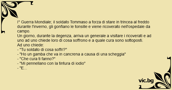 I° Guerra Mondiale; il soldato Tommaso a forza di stare in trincea al freddo durante l'inverno, gli gonfiano le tonsille e viene ricoverato nell'ospedale da campo.