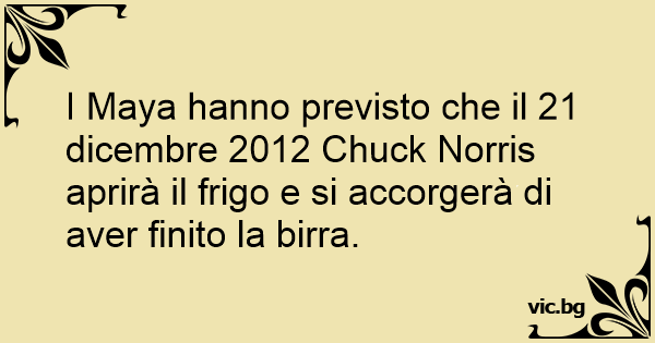I Maya hanno previsto che il 21 dicembre 2012 Chuck Norris aprirà il frigo e si accorgerà di aver finito la birra.