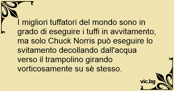 I migliori tuffatori del mondo sono in grado di eseguire i tuffi in avvitamento, ma solo Chuck Norris può eseguire lo svitamento decollando dall'acqua verso il trampolino girando vorticosamente su sè stesso.