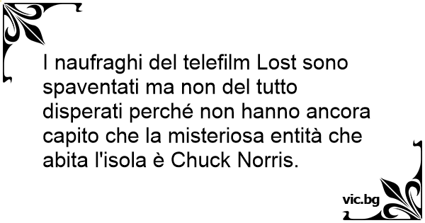 I naufraghi del telefilm Lost sono spaventati ma non del tutto disperati perché non hanno ancora capito che la misteriosa entità che abita l'isola è Chuck Norris.