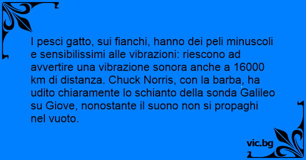 I pesci gatto, sui fianchi, hanno dei peli minuscoli e sensibilissimi alle vibrazioni: riescono ad avvertire una vibrazione sonora anche a 16000 km di distanza. Chuck Norris, соn la barba, ha udito chiaramente lo schianto della sonda Galileo su Giove, nonostante il suono non si propaghi nel vuoto.