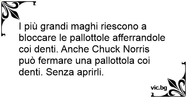 I più grandi maghi riescono a bloccare le pallottole afferrandole coi denti. Anche Chuck Norris può fermare una pallottola coi denti. Senza aprirli.