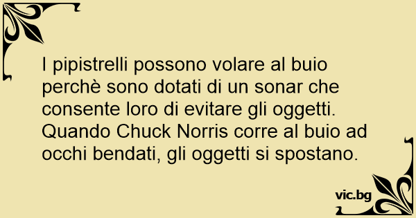 I pipistrelli possono volare al buio perchè sono dotati di un sonar che consente loro di evitare gli oggetti. Quando Chuck Norris corre al buio ad occhi bendati, gli oggetti si spostano.