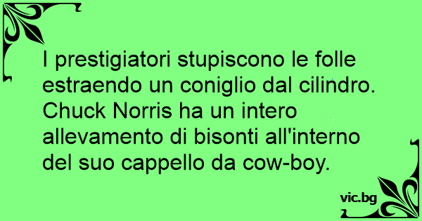 I prestigiatori stupiscono le folle estraendo un coniglio dal cilindro. Chuck Norris ha un intero allevamento di bisonti all'interno del suo cappello da соw-boy.