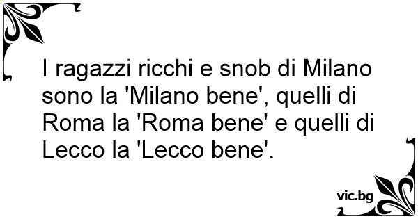 I ragazzi ricchi e snob di Milano sono la 'Milano bene', quelli di Roma la 'Roma bene' e quelli di Lecco la 'Lecco bene'.