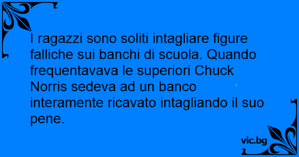 I ragazzi sono soliti intagliare figure falliche sui banchi di scuola. Quando frequentavava le superiori Chuck Norris sedeva ad un banco interamente ricavato intagliando il suo pene.
