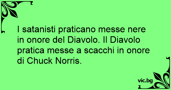 I satanisti praticano messe nere in onore del Diavolo. Il Diavolo pratica messe a scacchi in onore di Chuck Norris.