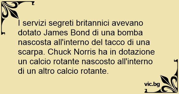 I servizi segreti britannici avevano dotato James Bond di una bomba nascosta all'interno del tacco di una scarpa. Chuck Norris ha in dotazione un calcio rotante nascosto all'interno di un altro calcio rotante.