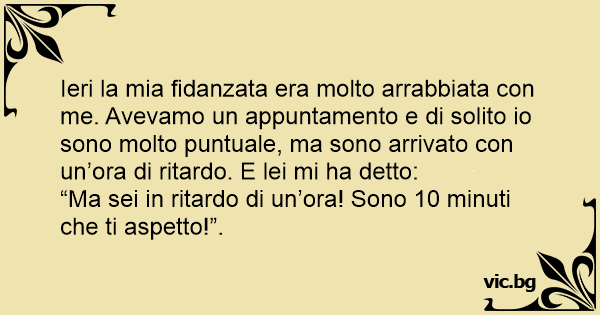 “Ma sei in ritardo di un’ora! Sono 10 minuti che ti aspetto!”.