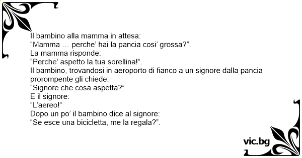 Il bambino, trovandosi in aeroporto di fianco a un signore dalla pancia prorompente gli chiede: