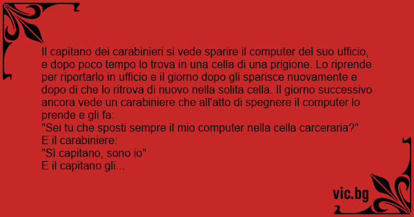 Il capitano dei carabinieri si vede sparire il computer del suo ufficio, e dopo poco tempo lo trova in una cella di una prigione. Lo riprende per riportarlo in ufficio e il giorno dopo gli sparisce nuovamente e dopo di che lo ritrova di nuovo nella solita cella. Il giorno successivo ancora vede un carabiniere che all'atto di spegnere il computer lo prende e gli fa: