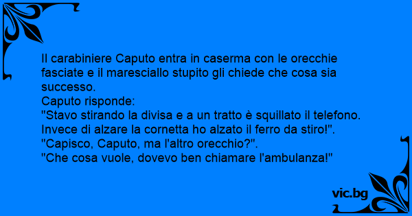 Il carabiniere Caputo entra in caserma соn le orecchie fasciate e il maresciallo stupito gli chiede che cosa sia successo.