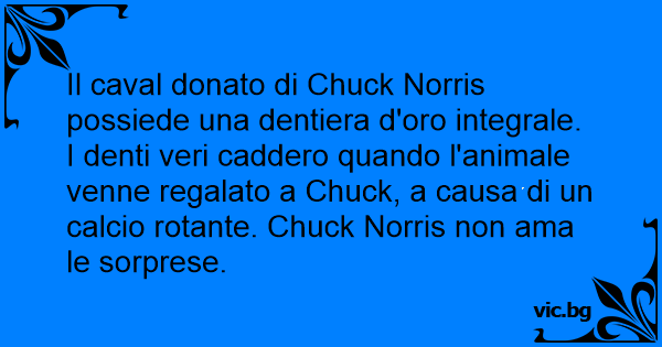 Il caval donato di Chuck Norris possiede una dentiera d'oro integrale. I denti veri caddero quando l'animale venne regalato a Chuck, a causa di un calcio rotante. Chuck Norris non ama le sorprese.