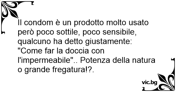Il соndом è un prodotto molto usato però poco sottile, poco sensibile, qualcuno ha detto giustamente: