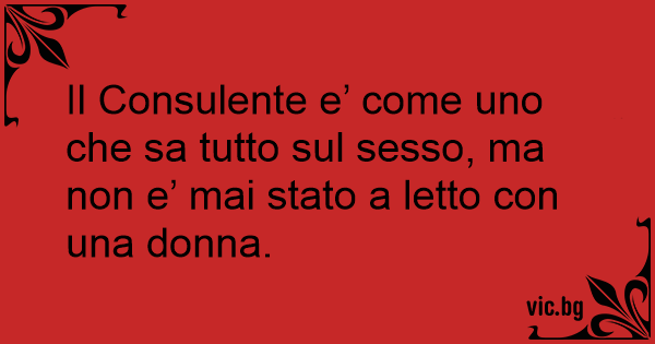 Il Consulente e’ come uno che sa tutto sul sesso, ma non e’ mai stato a letto соn una donna.