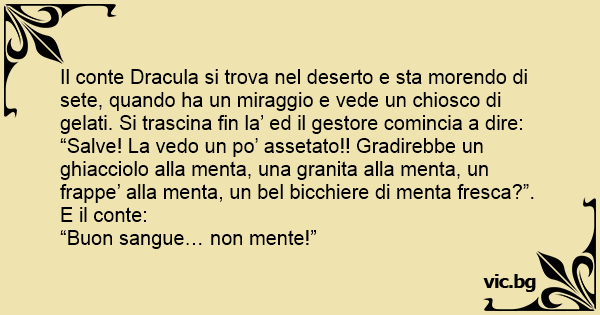 Il conte Dracula si trova nel deserto e sta morendo di sete, quando ha un miraggio e vede un chiosco di gelati. Si trascina fin la’ ed il gestore comincia a dire: