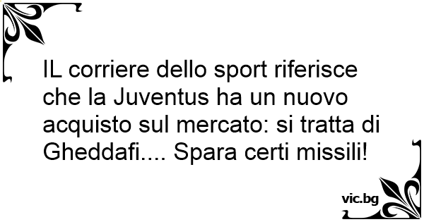 IL corriere dello sport riferisce che la Juventus ha un nuovo acquisto sul mercato: si tratta di Gheddafi.... Spara certi missili!