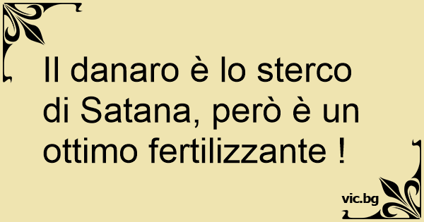 Il danaro è lo sterco di Satana, però è un ottimo fertilizzante !