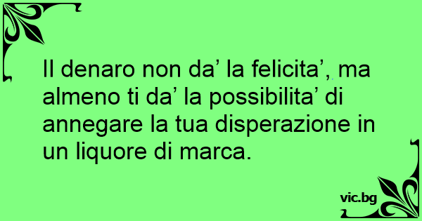 Il denaro non da’ la felicita’, ma almeno ti da’ la possibilita’ di annegare la tua disperazione in un liquore di marca.