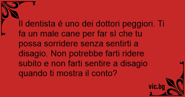 Il dentista é uno dei dottori peggiori. Ti fa un male cane per far sì che tu possa sorridere senza sentirti a disagio. Non potrebbe farti ridere subito e non farti sentire a disagio quando ti mostra il conto?