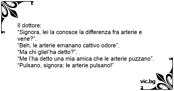 “Signora, lei la conosce la differenza fra arterie e vene?”.