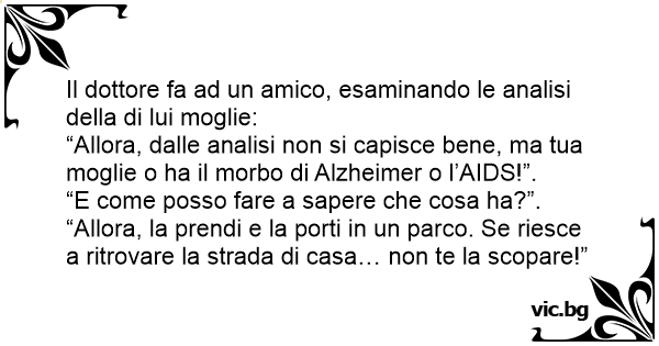 “Allora, dalle analisi non si capisce bene, ma tua moglie o ha il morbo di Alzheimer o l’AIDS!”.
