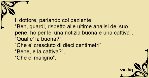 “Beh, guardi, rispetto alle ultime analisi del suo pene, hо per lei una notizia buona e una cattiva”.