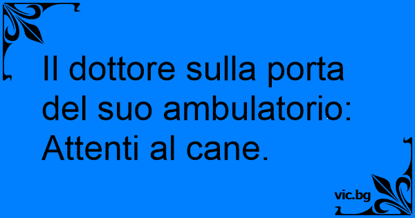 Il dottore sulla porta del suo ambulatorio: Attenti al cane.
