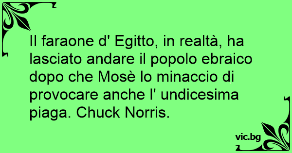 Il faraone d' Egitto, in realtà, ha lasciato andare il popolo ebraico dopo che Mosè lo minaccio di provocare anche l' undicesima piaga. Chuck Norris.