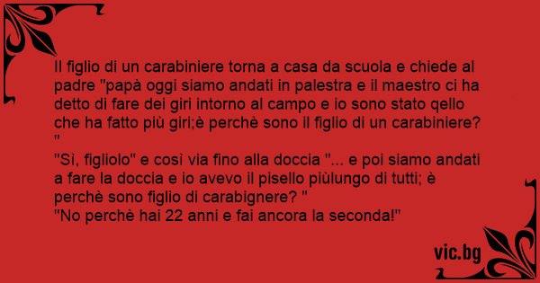 Il figlio di un carabiniere torna a casa da scuola e chiede al padre "papà oggi siamo andati in palestra e il maestro ci ha detto di fare dei giri intorno al campo e io sono stato qello che ha fatto più giri;è perchè sono il figlio di un carabiniere? "
