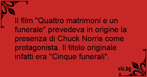 Il film "Quattro matrimoni e un funerale" prevedeva in origine la presenza di Chuck Norris come protagonista. Il titolo originale infatti era "Cinque funerali".