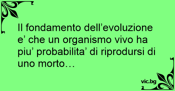 Il fondamento dell’evoluzione e’ che un organismo vivo ha piu’ probabilita’ di riprodursi di uno morto…