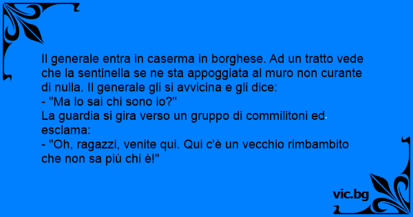 Il generale entra in caserma in borghese. Ad un tratto vede che la sentinella se ne sta appoggiata al muro non curante di nulla. Il generale gli si avvicina e gli dice: