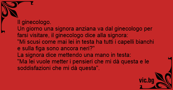 Un giorno una signora anziana va dal ginecologo per farsi visitare, il ginecologo dice alla signora: