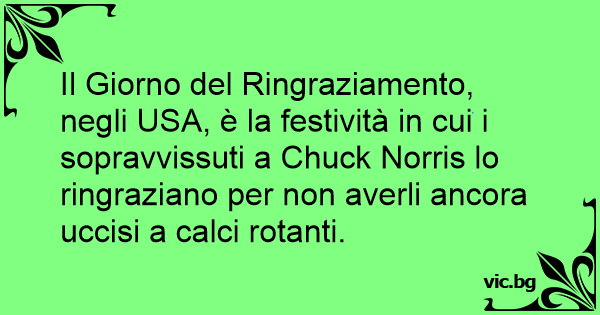 Il Giorno del Ringraziamento, negli USA, è la festività in cui i sopravvissuti a Chuck Norris lo ringraziano per non averli ancora uccisi a calci rotanti.