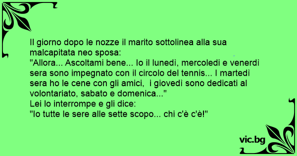 Il giorno dopo le nozze il marito sottolinea alla sua malcapitata neo sposa:
