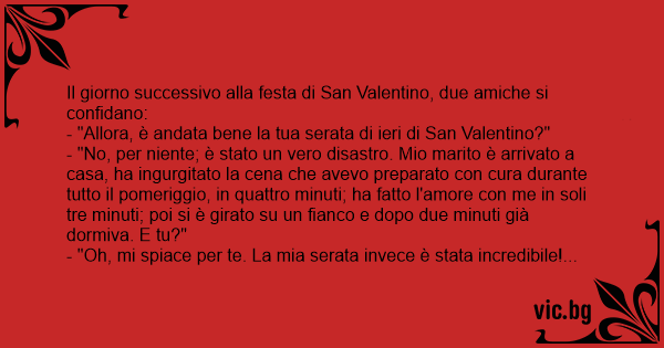 - "Allora, è andata bene la tua serata di ieri di San Valentino?"