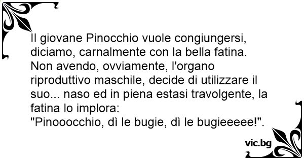 Non avendo, ovviamente, l'organo riproduttivo maschile, decide di utilizzare il suo... naso ed in piena estasi travolgente, la fatina lo implora:
