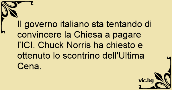 Il governo italiano sta tentando di convincere la Chiesa a pagare l'ICI. Chuck Norris ha chiesto e ottenuto lo scontrino dell'Ultima Cena.