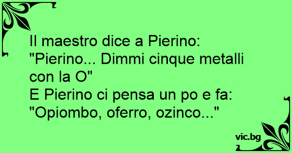 "Pierino... Dimmi cinque metalli соn la O"